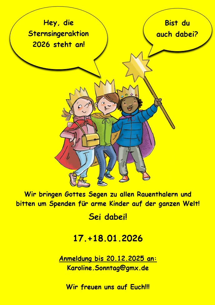 Die heiligen drei Könige wollen auch 2026 wieder zu Ihnen nach Hause kommen und den Segen Gottes in ihre Häuser und Wohnungen bringen. Sie hinterlassen dabei die Formel 20*C+M+B+26 an den Türen, dass für "Christus Mansionem Benedicat" – also "Christus segne dieses Haus (und alle die da gehen ein und aus)" – steht.